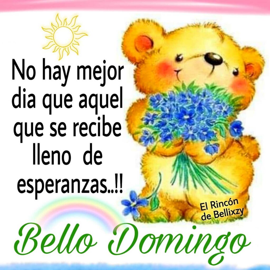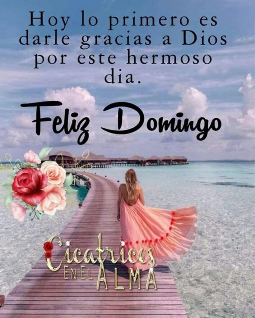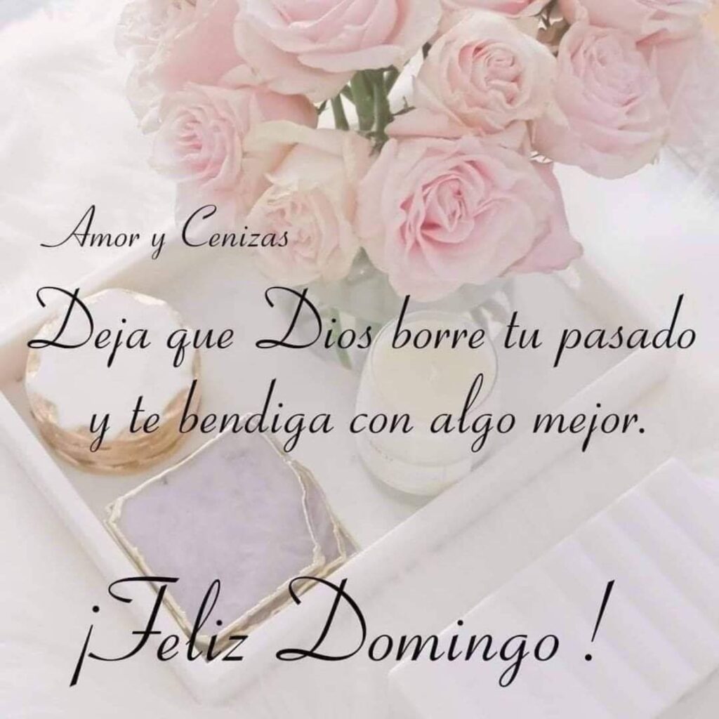 Deja que Dios borre tu pasado y te bendiga con algo mejor. ¡Feliz Domingo!Buenos días, feliz DomingoImágenes nuevas para decir Feliz Domingo a todosHoy lo primero es darle gracias a Dios por este hermoso día. Feliz DomingoQue disfruta de un lindo domingo.No llega antes quien va más rápido, sino quien sabe a donde va. Feliz DomingoFeliz Domingo, les deseo un día lleno de bendiciones¡Buenos Días! Te deseo un día cargado de amor y risas con todos los que te rodean. Feliz DomingoFeliz Domingo amigos, buen día, Dios te bendiga (Mis tanjetitas de colores)FELIZ DOMINGOAsí juntos… en una oración única, podamos compartir la fé en Dios, y enviar a todos los corazones que necesitan del cariño y amor de Jesucristo. Buenos Días! Bendecido Domingo!BUENOS DÍAS, FELIZ DOMINGO MI AMOR¿Dónde están la gente bonita que si saben saludar? Buenos Días, Feliz DomingoFeliz y bendecido DomingoHOY ES DOMINGO y para quién ya se despertó, MIS BUENOS DÍAS. Gracias Dios mío por un día más de vida.Las mejores cosas de la vida siempre vienen de Dios. Dios te bendiga! Feliz DomingoBuenos Días, feliz domingo, disfrútalo.Feliz y bendecido Domingo